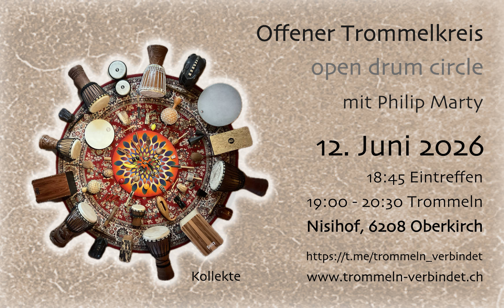 Rhythmus-Begeisterte und gwundrige Menschen aufgepasst: Etwa einmal im Monat hast du die Möglichkeit mit uns zu Grooven! Die offenen Trommelkreise eignen sich für Kinder ab 8 Jahren, Teenager, Junggebliebene und Senioren gleichermassen. Ob alleine, mit der Partnerin oder der ganzen Familie, komm in den Kreis und feiere mit uns das Leben!